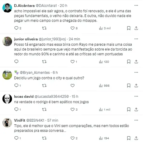 Diante da proporção que as declarações tiveram em todo o mundo, Rodrygo utilizou as redes sociais para se manifestar. O brasileiro esclareceu que não pretende deixar o Real Madrid.