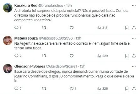 “Representantes do clube estão em contato com o estafe do jogador para entender os motivos que o levaram a tomar tal atitude e estudar as providências”, concluiu o Timão no texto publicado em seu site.