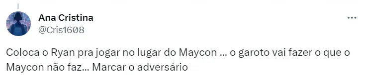 Não será a primeira vez de Ryan atuando pelo time principal do Coringão. O volante de 20 anos já entrou em campo duas vezes no profissional e marcou o polêmico gol contra o Universitario, do Peru, na Sul-Americana do ano passado.