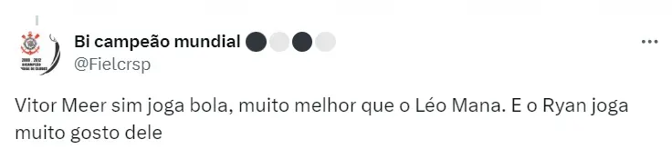 Com Ryan e Meer à disposição e sem Garro, esse deve é o provável Corinthians para o Majestoso, segundo o Globo Esporte: Cássio; Fagner, Félix Torres, Caetano e Hugo; Raniele, Fausto Vera (Matheus Araújo) e Maycon; Matías Rojas e Romero; Yuri Alberto.