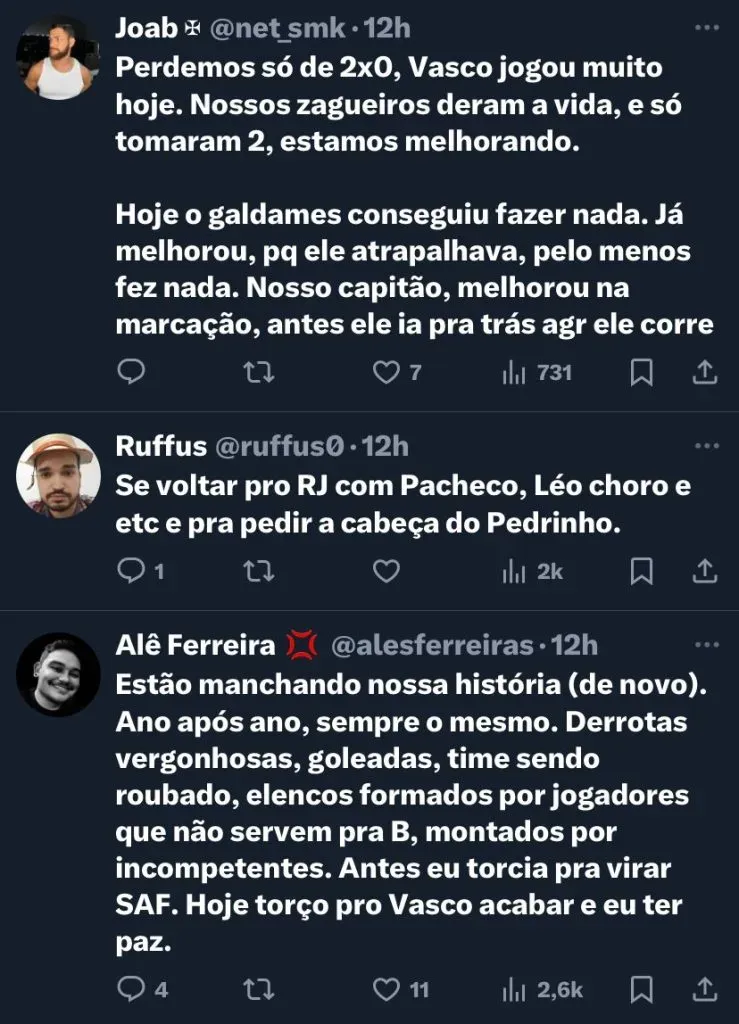 Essa é a sexta derrota do Vasco na competição nacional. Além desses revés, a equipe também tem duas vitórias, uma contra o Vitória e outra contra o Grêmio, logo no início do Brasileirão.