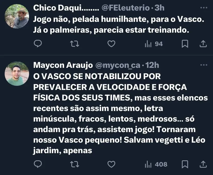 O Vasco perdeu a última partida do Campeonato Brasileiro para o Palmeiras, por 2 a 0, no Allianz Parque. Com a derrota o Cruzmaltino ficou em 14º lugar na tabela, com apenas seis pontos.
