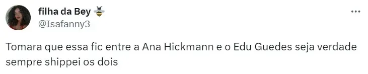 Desde que o rumor sobre Ana começou a circular pelas redes, Edu Guedes vem desmentindo a notícia. No início do mês, o cozinheiro frisou que sua relação com a jornalista é apenas de amizade.