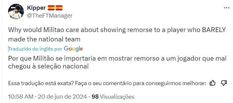 Atitude de Militão vira assunto fora do Brasil