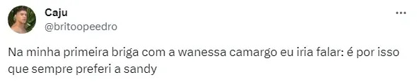 “Quero dar oportunidade para mim, de me apresentar. Não sou o contrário da Sandy, não sou a filha (do Zezé e da Zilu), a mulher… Quem sou eu? Oi, prazer, Brasil. Vamos nos conhecer?”, continuou Wanessa.