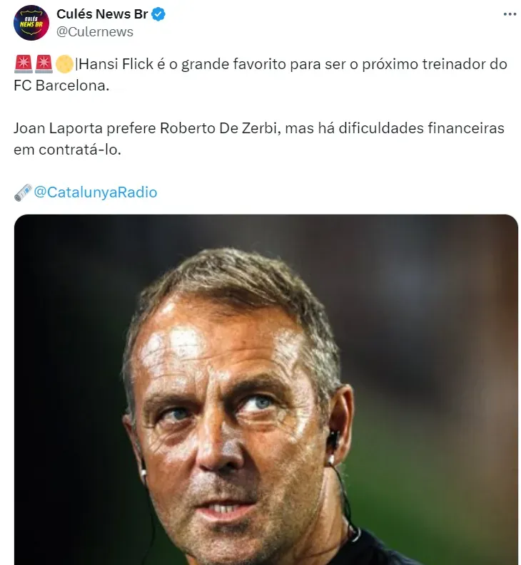 Além disso, o Barcelona teria a concorrência do Liverpool, interessado, em conversas com o treinador e melhor colocado financeiramente em relação ao clube de LaLiga.