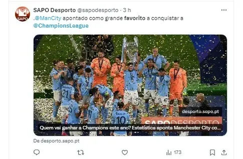 Logo atrás do City, vem o Real Madrid, com 16,87% de chances, e o Arsenal, líder atual da Premier League, com 13%. Uma surpresa na lista é o Borussia Dortmund, que é apontado com mais oportunidades de vitória do que o Barcelona e o Atlético de Madrid.