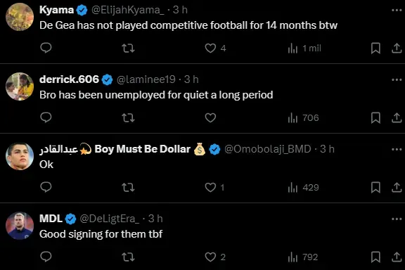 São 432 dias desde a última vez que De Gea entrou em campo. Ele, que mantinha forma física de maneira particular, chegou a receber propostas da Arábia Saudita, MLS e Genoa. Neste último, não acertou por isso.