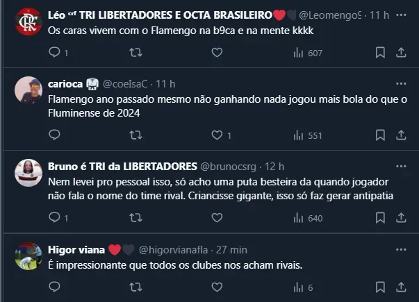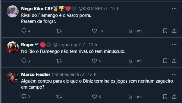 Vale lembrar que, explicando um pouco melhor a declaração de Thiago, ele se referiu ao Flamengo de Vítor Pereira, que enfrentou uma série de competições no início do ano e não conseguiu deslanchar.