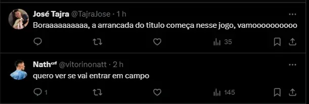 O treinador completou dizendo: “o momento agora não é bom. Tem que crescer, tem poderio para isso e mesmo com atletas ausentes“. Mesmo com jogadores no departamento médico, o técnico entende que o elenco tem peças para substituir os jogadores lesionados.