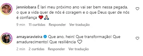 “Meu desejo é que o novo traga excelentes frutos, muita luz, esperança, prosperidade, amor, paz e chuva de bençãos. Obrigada 2023! Você me transformou e eu amo minha versão depois de ti”, finalizou a atriz.