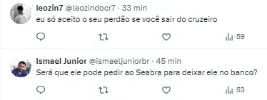 A forte cobrança envolveu todo o elenco, e a torcida ainda foi mais incisiva ao protesto: “Se o Cruzeiro não ganhar, o pau vai quebrar”.