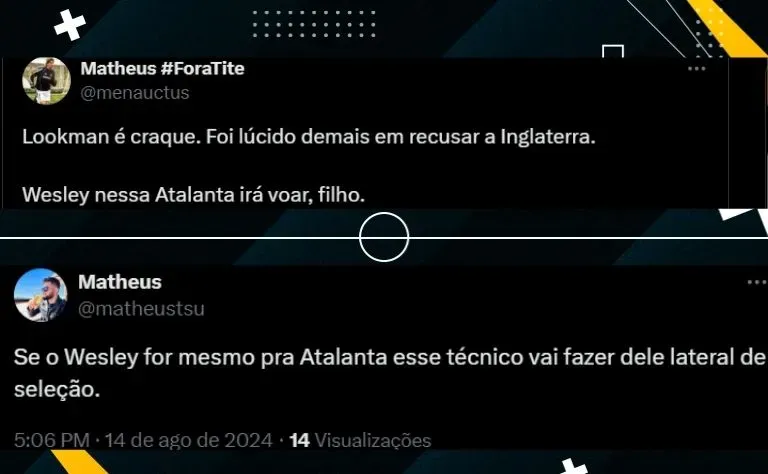 “Se eu fosse o Wesley já estaria comprando as passagens para Itália. A Atalanta não é uma equipe de primeira prateleira, mas é um time muito bom que dá trabalho pra qualquer adversário. Vai entrar num time pronto e forte”, escreveu outro flamenguista na rede social.