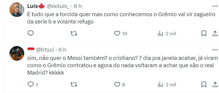 Torcida do Grêmio pede dois reforços