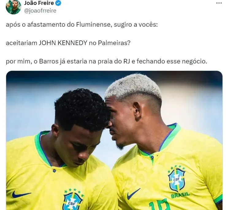 A situação de Kennedy com o Fluminense é de um contrato que vai até 2026. No mercado, seu valor é de 7 milhões de euros. Não há nenhum tipo de informação sobre qualquer interesse do Palmeiras no atleta.