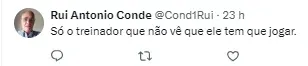 “O glorioso Carpini quando dá chance pro Bobadilla e Galoppo coloca um de lateral e, o outro, de centroavante. Continue o bom trabalho, mestre (ironia);