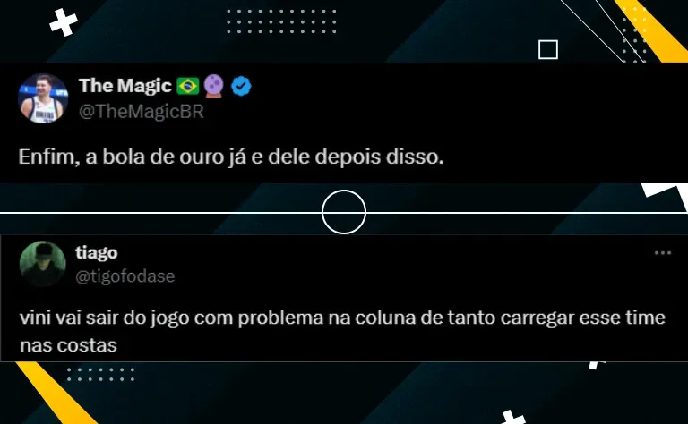 Após a goleada, Vinicius Júnior se mostrou muto feliz com a partida. “Sempre falo que nunca jogo por mim, pela equipe, pelo Brasil, pelo meu país, sempre tento fazer as melhores coisas, nem sempre é possível”, comentou o atacante.