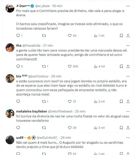 Como a torcida do Corinthians reagiu sobre o assunto