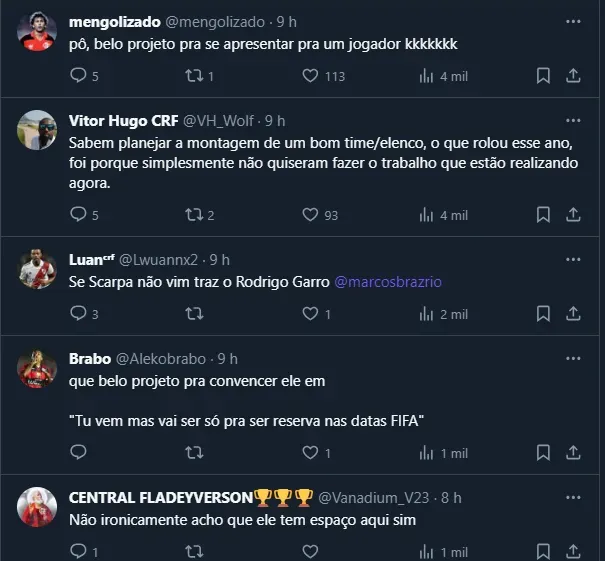 Dito isso, por mais que Scarpa venha atraindo o interesse de praticamente todos os grandes clubes do Brasil, o Flamengo está confiante de que pode tirá-lo da Europa ainda nesta janela, mesmo que seja algo improvável.