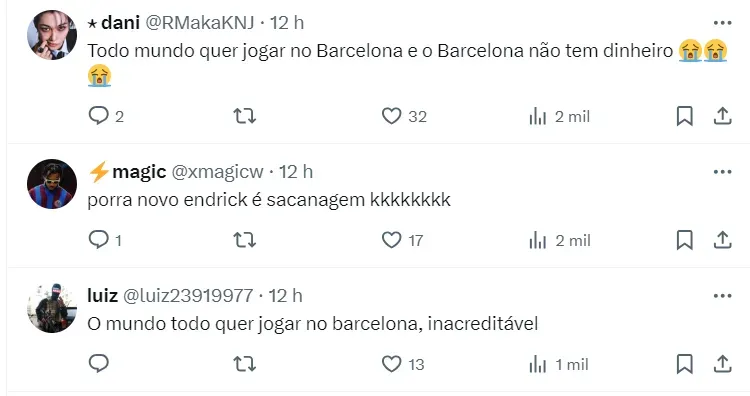 “Quem dera. Meu sonho ir para o Barcelona”, disse Wesley, em conversa com um torcedor, que fez a pergunta sobre qual desejo do futuro da grande revelação do clube paulista.