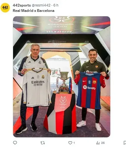 “O Madrid talvez chegue num momento um pouco melhor do que a gente, essa é a realidade. Mas não há um favorito. É 50% a 50%. Isso é El Clásico. É o 1º título de quatro que vamos disputar nesta temporada, e estamos no lugar em que queríamos estar neste momento”, afirmou Xavi.
