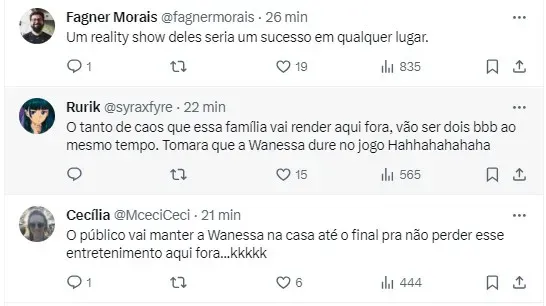 Após o anúncio da ida da artista ao reality, a musa fitness e atual companheira de Zezé di Camargo, que é pai de Wanessa, fez uma postagem dizendo: “Estamos com você“.
